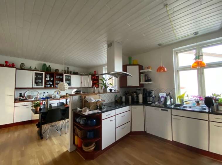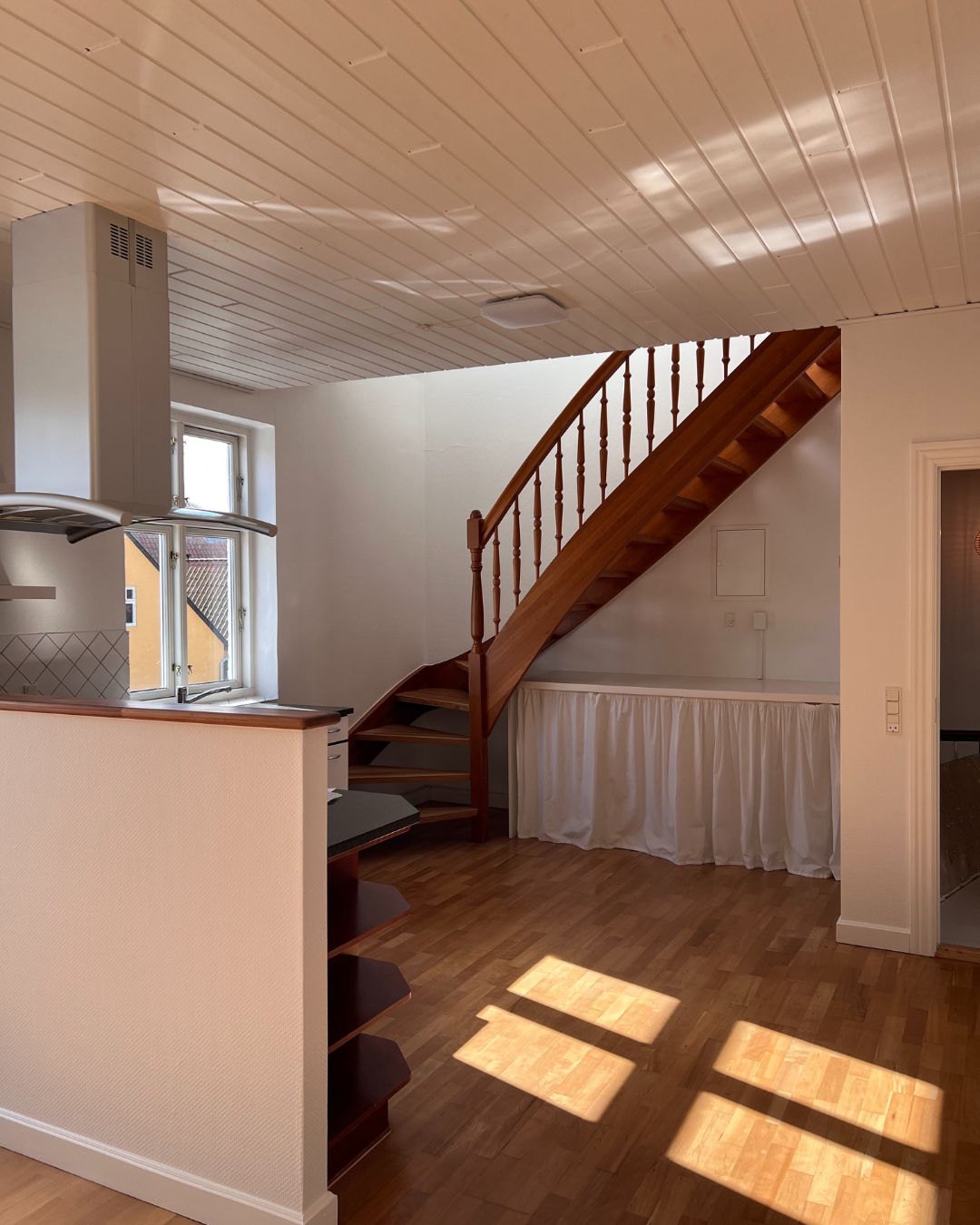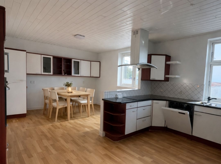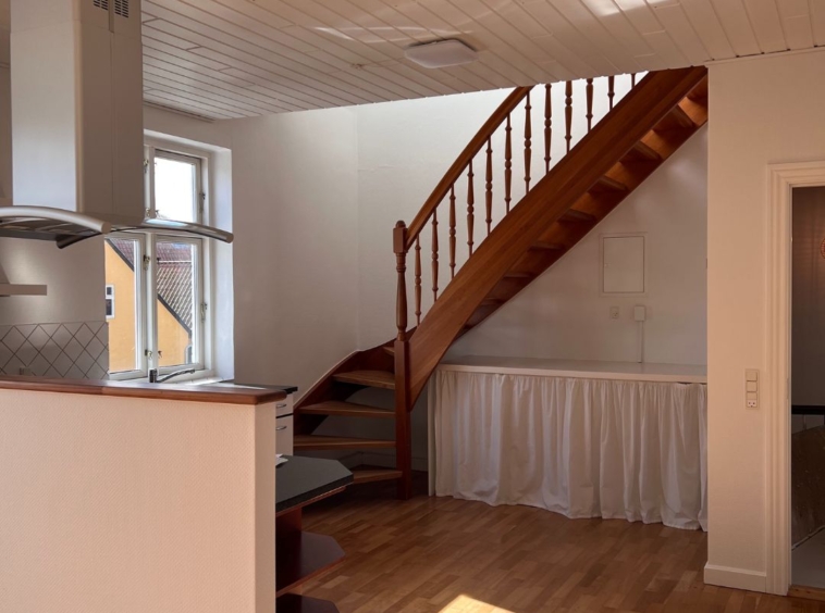Lejligheden rummer 4 værelser, et depotrum samt et stort og åbent køkken/alrum med god plads til både hverdag og gæster. Køkkenet har direkte udgang til en privat tagterrasse, som giver mulighed for udeliv i hverdagen. Den store stue skaber en naturlig samlingsplads i boligen. Der er plads til både vaskemaskine og tørretumbler, og med i lejemålet følger også en privat parkeringsplads.